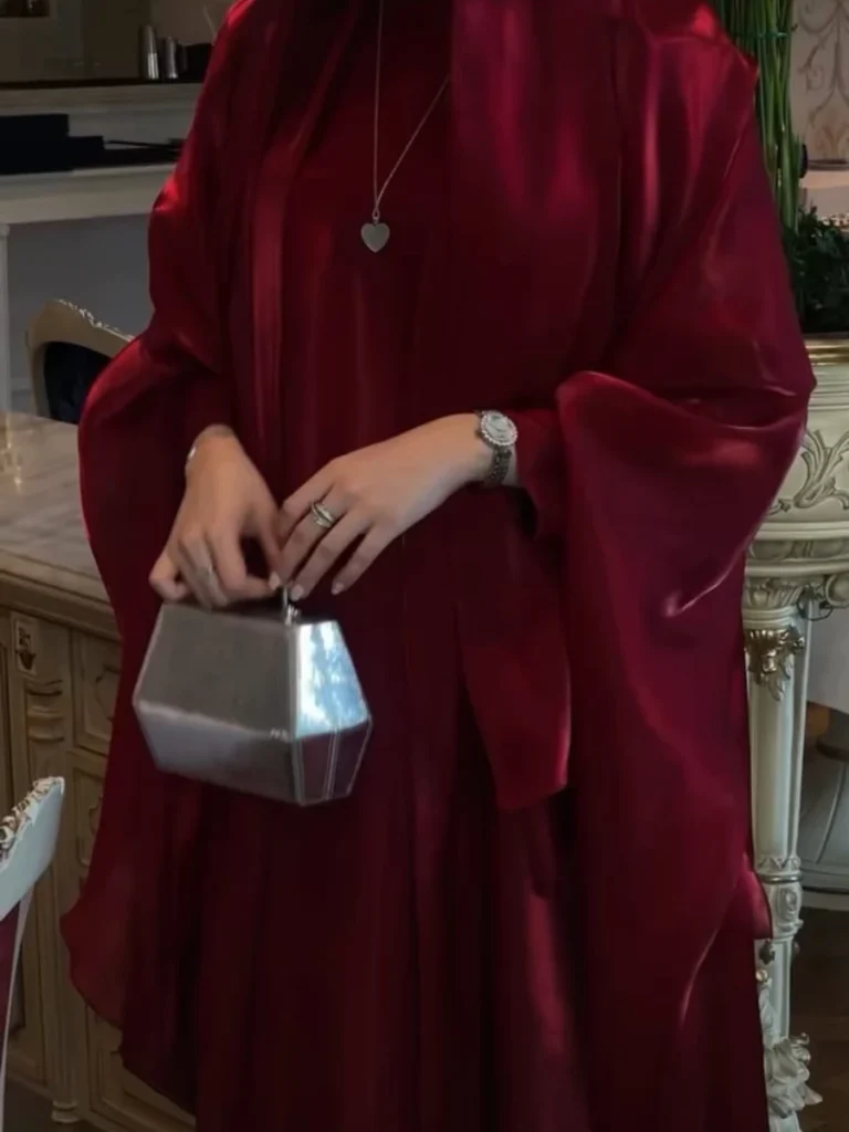Wrapped in the mystery of the night, Zahrah – Rang-e-Shab is crafted from rich organza that glows with a deep maroon sheen. Flowing gracefully with every step, this abaya embodies the elegance of midnight charm and the allure of timeless sophistication.